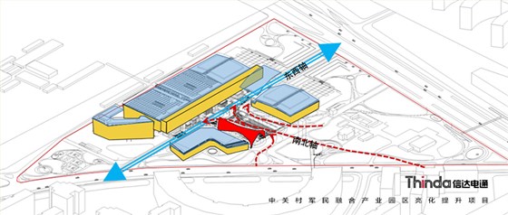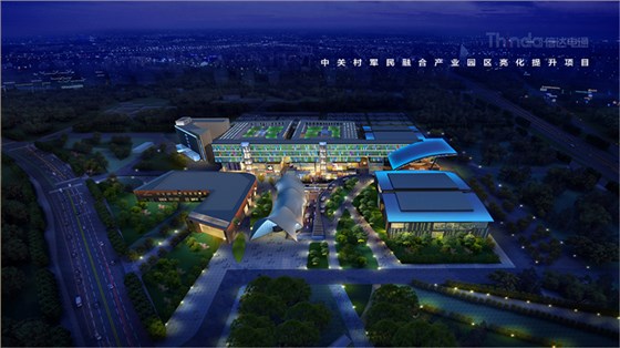 中關村軍民融合產業(yè)園區(qū)的亮化設計主要以建筑燈光為主體設計方向,用燈光的形式突出建筑結構特點,突出時尚、創(chuàng)新、科技、新潮的融合產業(yè)園。園區(qū)建筑結構整體簡潔、大氣,信達電通利用光影效果及景觀元素,打造東西、南北軸向的建筑縱身層次,整體以各種幾何形體組合而成,燈光在設計的同時尊重建筑本身的理念,優(yōu)化夜景氛圍,通過塊與面的結合,塑造一個大氣魄、大追求的文化產業(yè)新品牌。