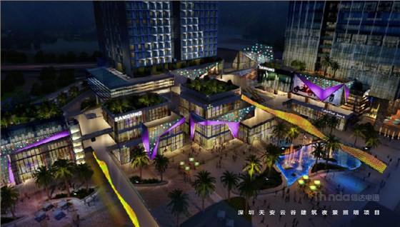 深圳天安云谷建筑夜景照明鳥瞰圖