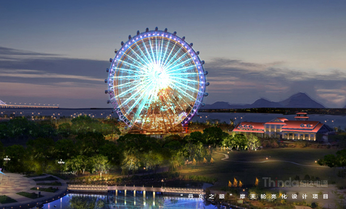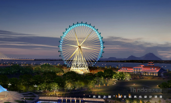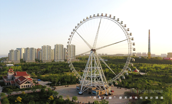被譽(yù)為“丹東之眼”的摩天輪位于丹東新區(qū)的國(guó)門灣公園內(nèi),該公園占地17萬(wàn)平方米,是丹東比較知名的公園,而且丹東非常靠近中朝邊境線,所以此地區(qū)也被譽(yù)為:中朝邊境互補(bǔ)合作的橋頭堡和未來(lái)的區(qū)域綜合交通樞紐。在這重要的經(jīng)濟(jì)和科技發(fā)展地,丹東之眼屹立于此,為這絕美的景色填上了華麗的一筆,而信達(dá)電通的照明設(shè)計(jì)也體現(xiàn)在國(guó)門灣公園內(nèi)的標(biāo)志性建筑—國(guó)門灣摩天輪。