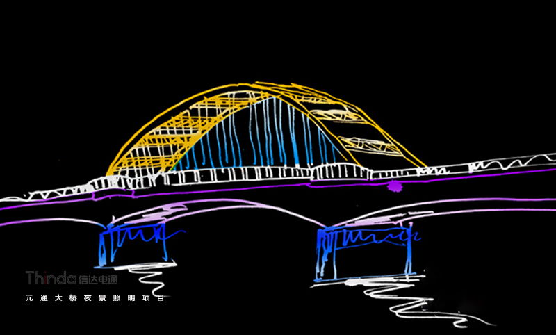 簡單與復雜、精致與粗獷、明與暗、虛與實、冷與暖,也許這一刻照明給人的感覺是一個樣子,下一刻給人的感覺也許就產生了變化,本案橋梁照明先以靜入手,再給人以動之感。而目前的橋梁照明整體光色雜亂,橋體夜景品質不高,部分燈具也有損壞的情況,燈具外露情況較為明顯,影響日間與夜間的觀感。